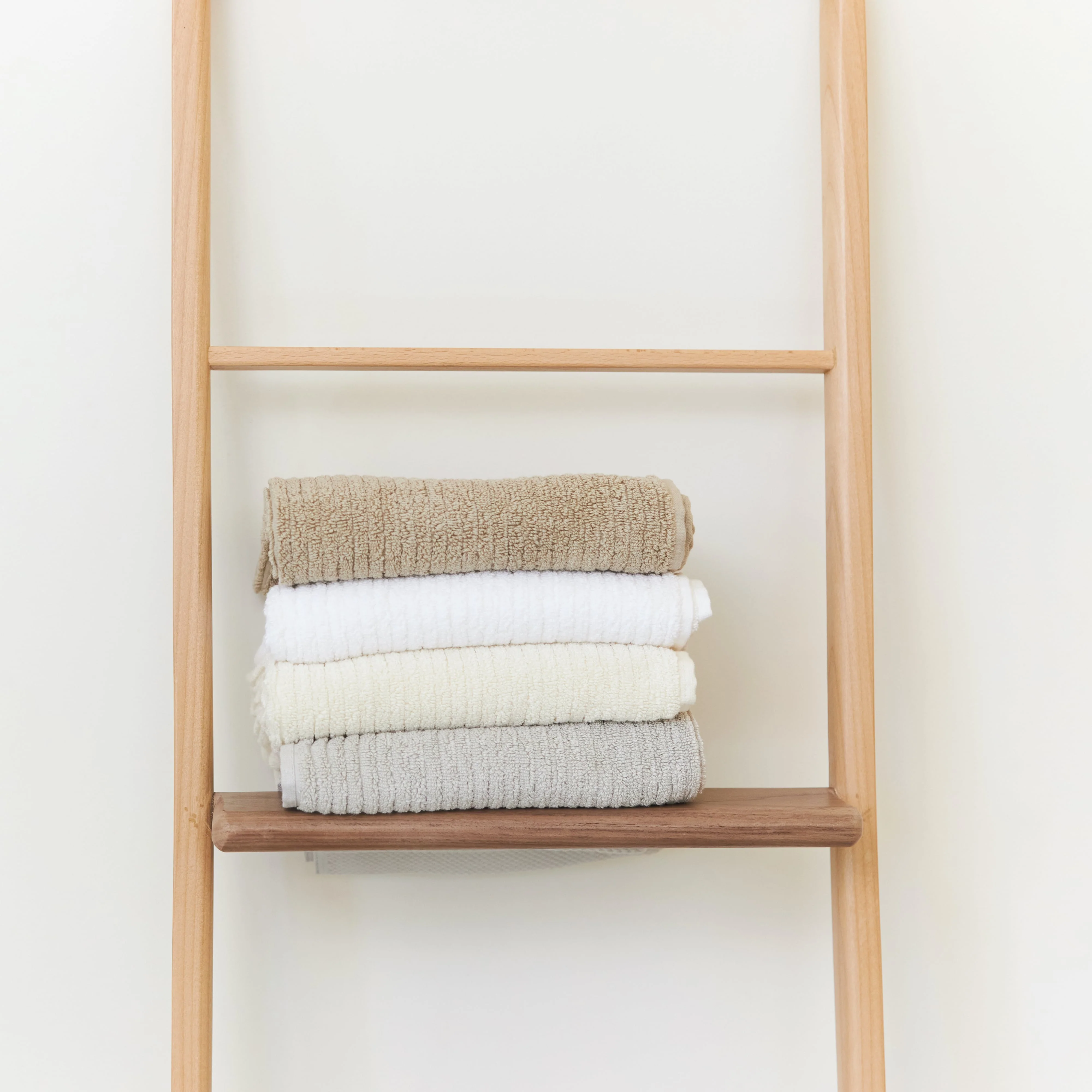 With rounded corners and a small shelf, our Wooden Towel Ladder has a modern, warm aesthetic. We handcraft the ladder in our Los Angeles woodshop with American Beech wood. No assembly required. Pairs with our natural and elegant Wooden Bath Tray, Wooden Towel Rack, and Wooden Bath Mats.